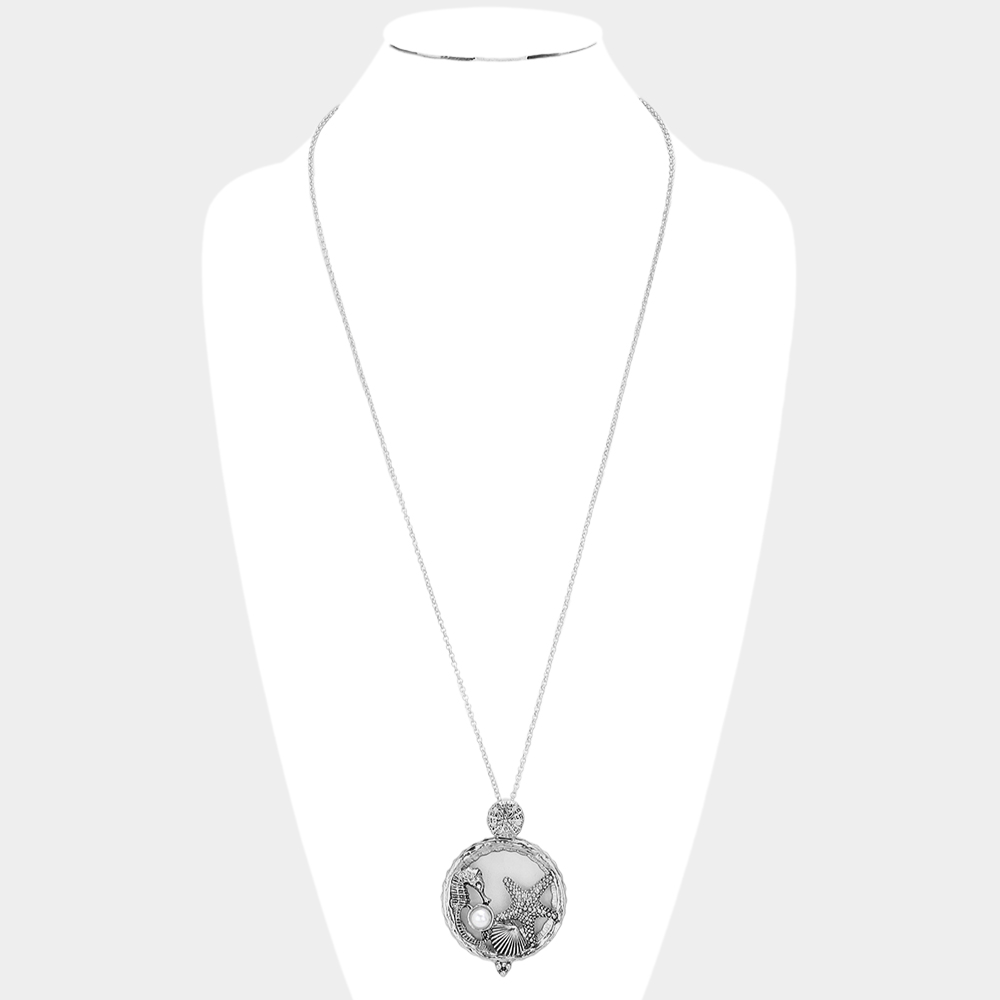 Seahorse Starfish Shell Pearl Magnifying Glass Pendant Long Necklace