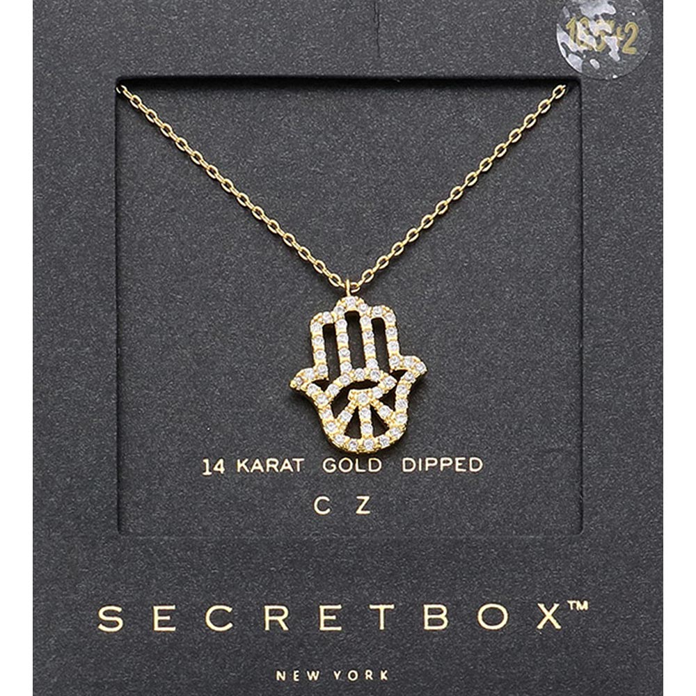 SECRET BOX_ Sterling Silver Dipped CZ Hamsa Hand Evil Eye Pendant Necklace