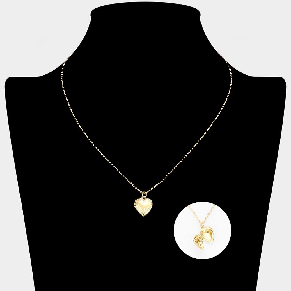 Details • Necklace Size : 17" + 2" L • Pendant Size : 0.35" X 0.5" • Charming heart locket pendant necklace with delicate detailing and a dainty chain. A sentimental keepsake piece perfect for gifting or everyday wear, offering timeless elegance and a meaningful touch to any outfit. • Lead and Nickel Compliant • Gold Dipped