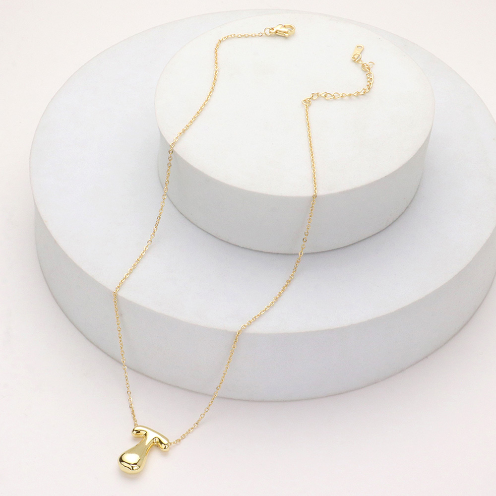 Details • Necklace Size : 15.5" + 2.25" L • Pendant Size : 0.75" L • Stylish pendant necklace featuring a bold, modern initial "G" design. Perfect for personalizing your look or gifting to someone special, adding a touch of elegance to any outfit. • Gold Dipped