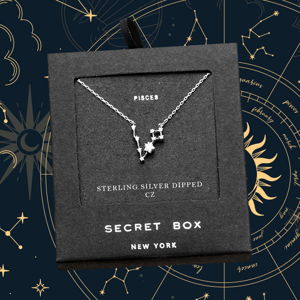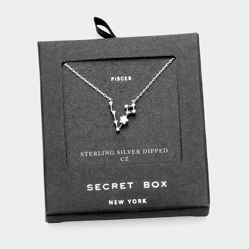 Secret Box _ Sterling Silver Dipped CZ Pisces Zodiac Sign Pendant Necklace