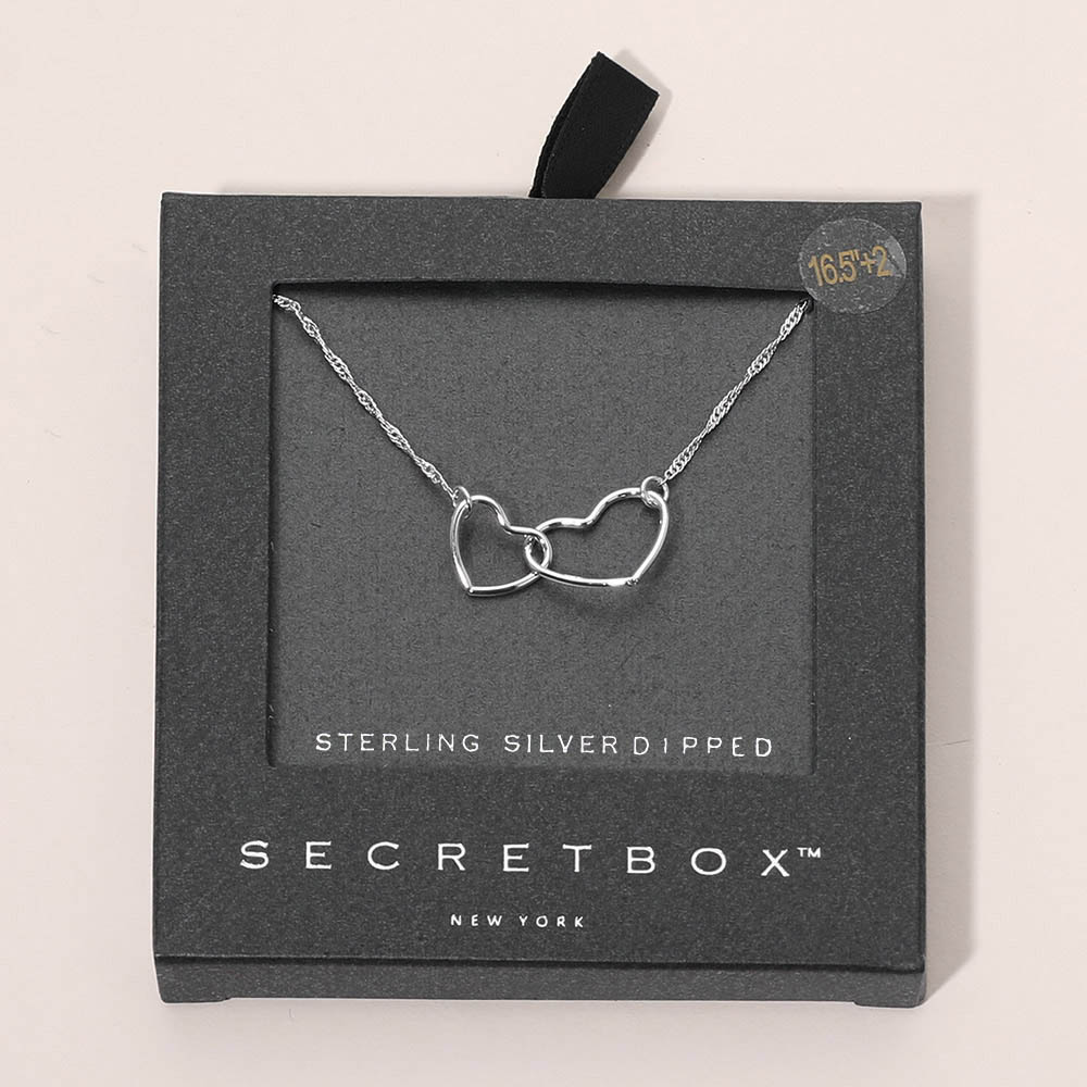 Details • Necklace Size : 16.5" + 2" L • Pendant Size : 0.8" X 0.4" • Elegant interlocking heart link necklace featuring a minimalist open-heart design that symbolizes connection and love. A timeless everyday accessory that layers beautifully or stands alone, making it ideal for gifting, daily wear, and meaningful styling across seasons and occasions. • Sterling Silver Dipped