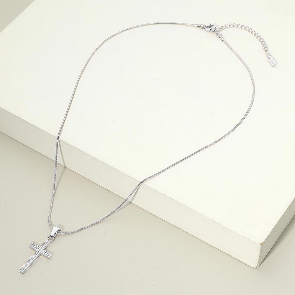 Details • Necklace Size : 16" + 2" • Pendant Size : 0.6" X 1.4" • This stainless steel necklace features a classic cross pendant adorned with subtle detailing for a timeless look. Designed for durability and everyday wear, it blends elegance with simplicity, making it an ideal accessory for layering or as a meaningful standalone statement piece. • Stainless Steel