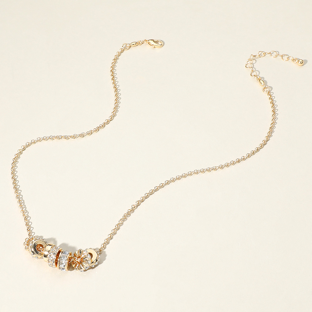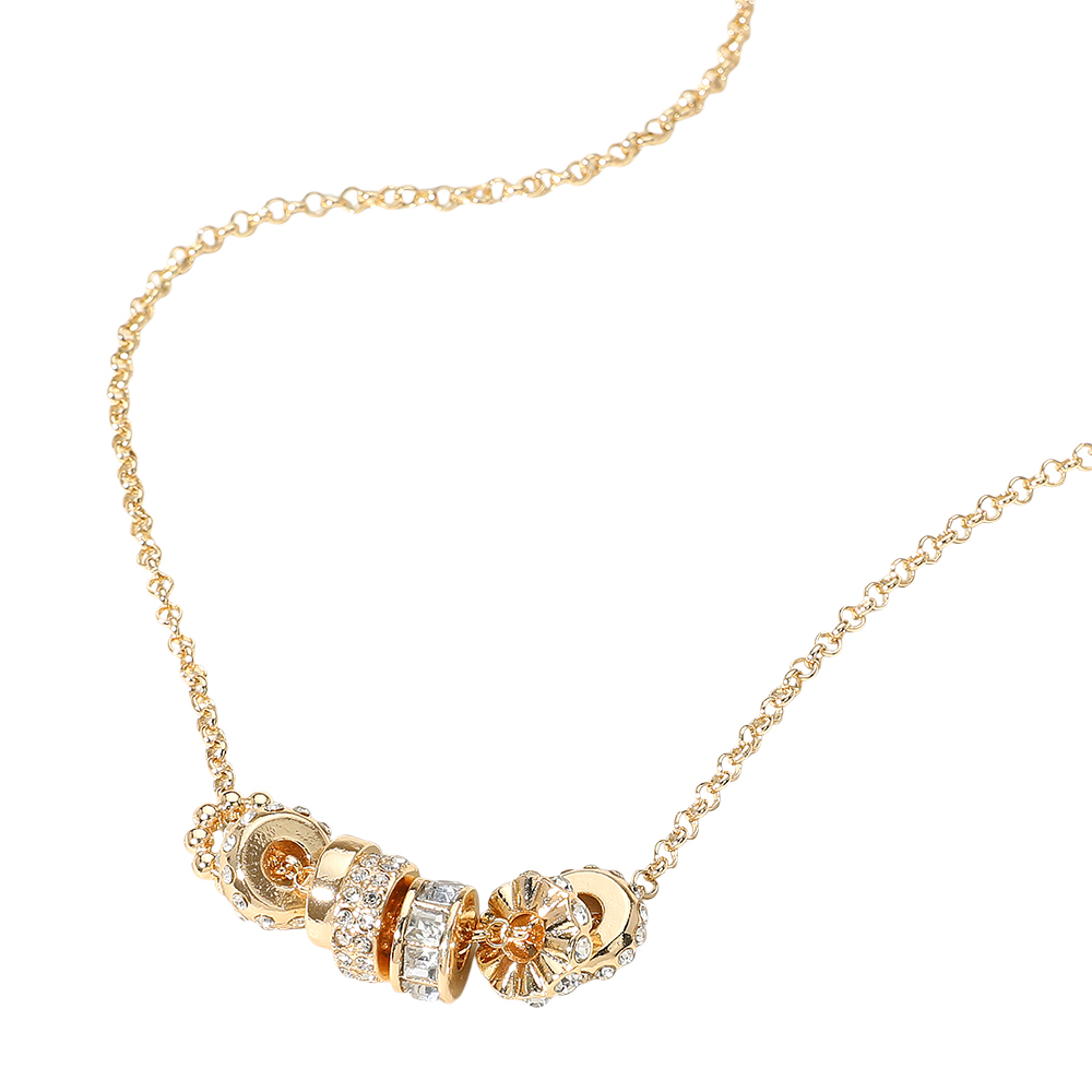 • Delicate necklace featuring a series of polished and crystal-accented rings strung along a fine chain. The minimalist design offers a touch of sparkle and sophistication, perfect for layering or wearing solo. A versatile accessory for everyday elegance or subtle evening charm.