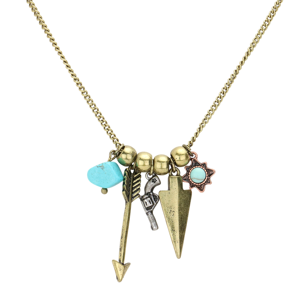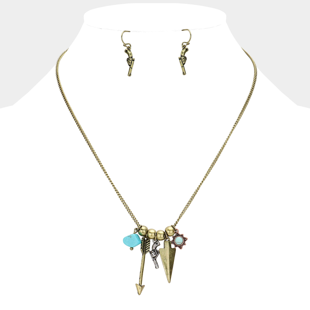 Turquoise Stone Accented Arrow & Gun Pendant Necklace