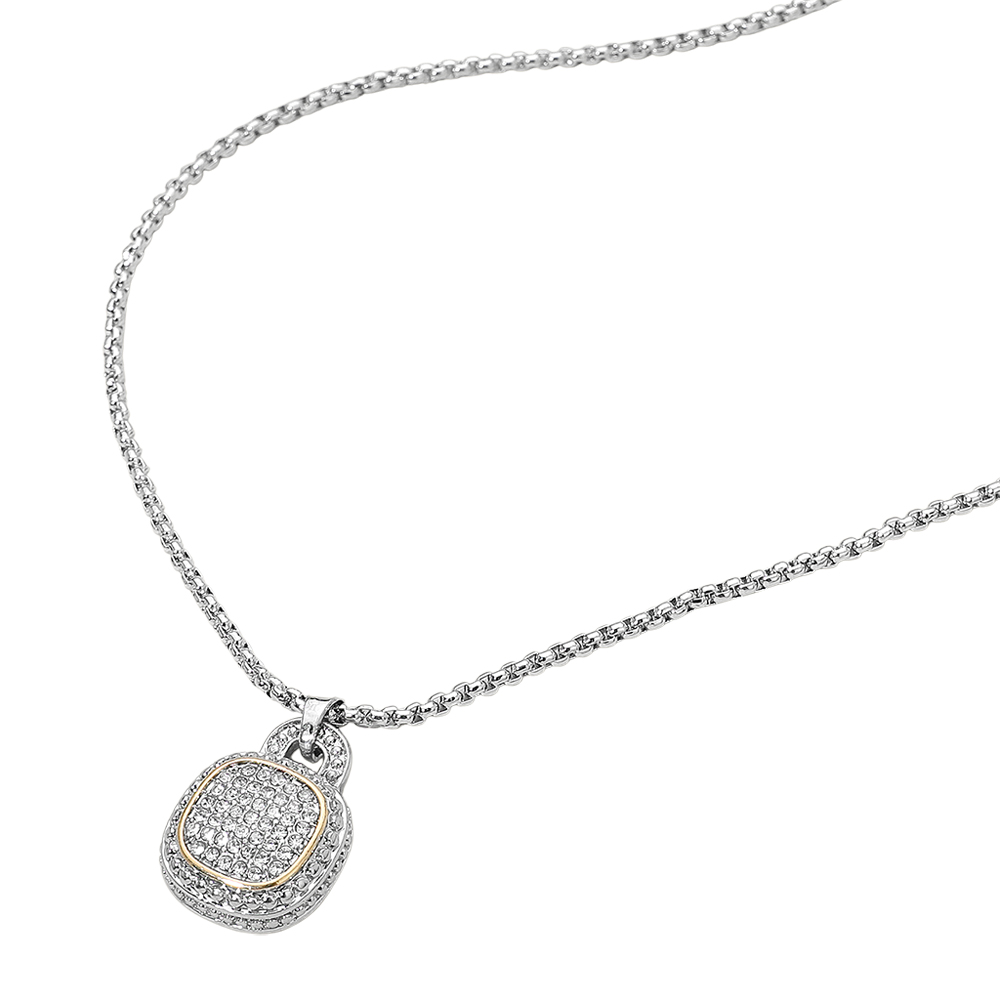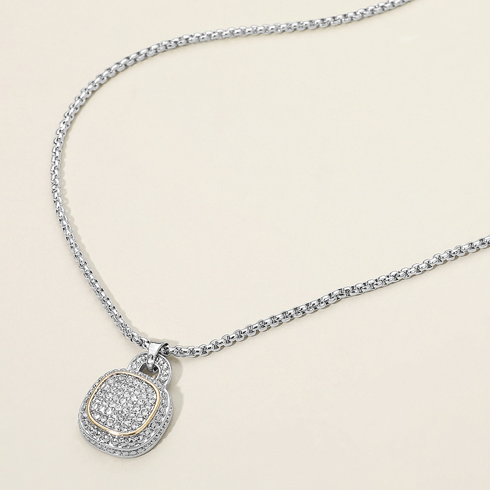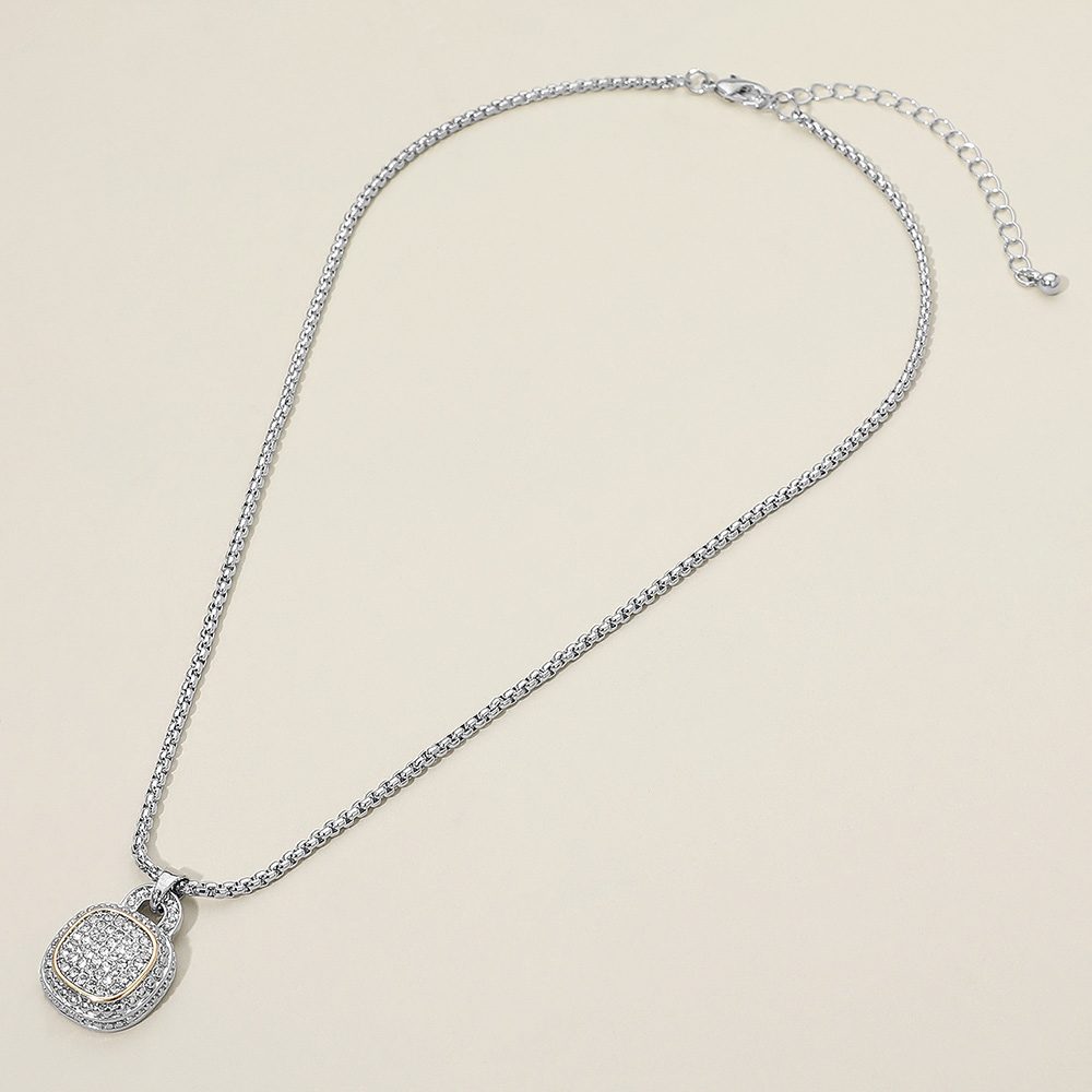 Details • Necklace Size : 18.25" + 3.25" L • Pendant Size : 0.75" X 1" • A refined everyday accessory featuring a compact, crystal-style accented pendant suspended from a sleek chain. Designed to complement both casual and dressy looks with subtle sparkle, perfect for solo wear or layered styling. • Lead and Nickel Compliant