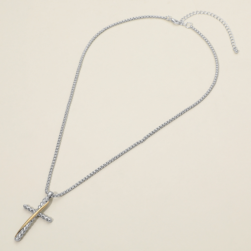 Details • Necklace Size : 17.75" + 3.25" L • Pendant Size : 0.8" X 1.5" • A sleek chain necklace featuring a sculpted cross pendant with a modern textured design. Ideal for everyday wear or meaningful gifting, offering a clean, versatile look that layers beautifully or stands out worn solo. • Lead and Nickel Compliant