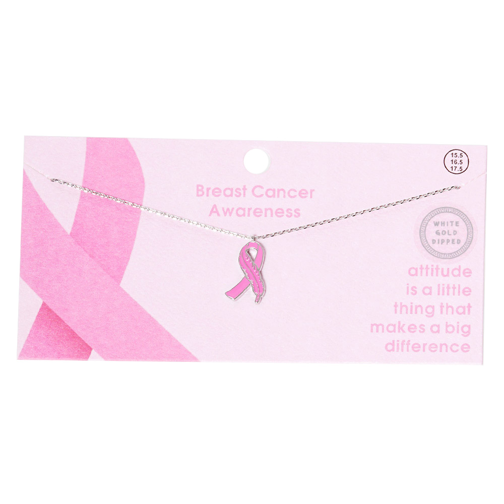 Details • Necklace Size : 15.5" + 2" L • Pendant Size : 0.4" X 0.75" • Show your support and strength with this pink ribbon feather necklace, a meaningful accessory that carries a message of hope and resilience. Designed with a delicate chain and symbolic pendant, it’s a thoughtful gift or personal keepsake to honor courage and awareness. • Lead and Nickel Compliant • Made In Korea • Gold Dipped