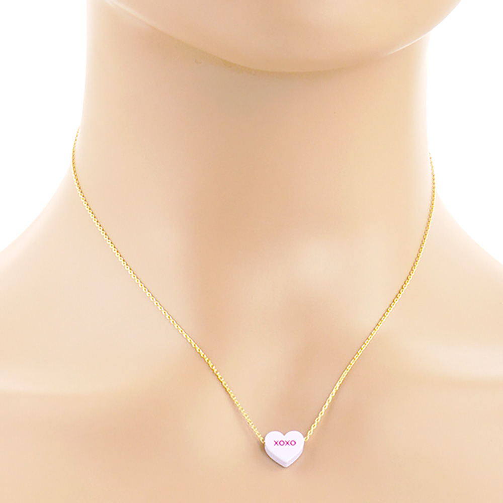 Metal Heart Pendant Live Your Dream Message Charm Chain Toggle Necklace