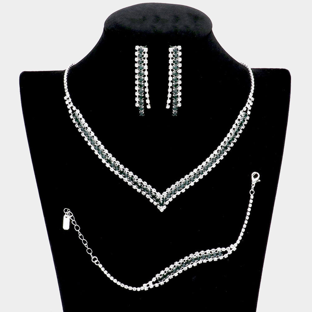 3PCS - Round Stone Detail Rhinestone Necklace Jewelry Set