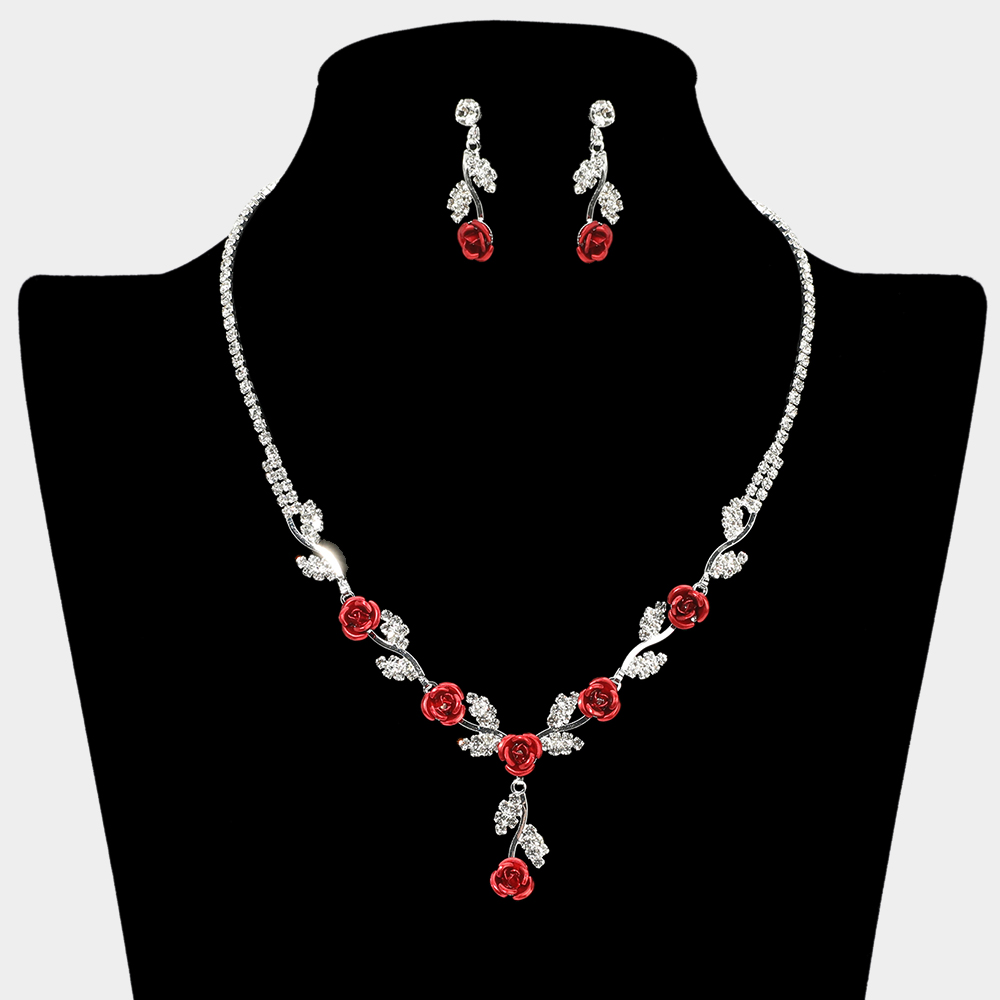 Colored Rose Flower Marquise Stone Cluster Link Rhinestone Paved Necklace