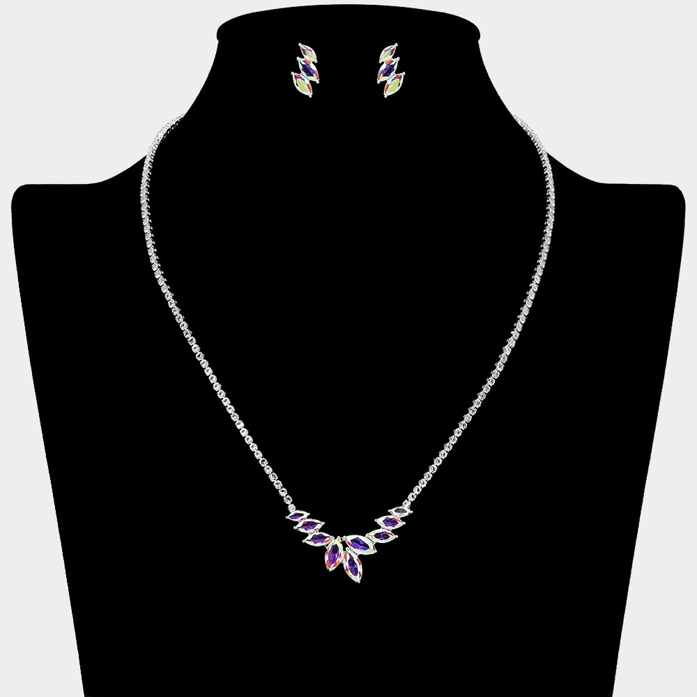 Details • Necklace Size : 17.5" + 4.5" L • Decor Size : 0.6" L • Earrings Size : 0.6" L • Refined jewelry set featuring a delicate leaf pendant necklace and matching earrings with sparkling accents. Ideal for weddings, proms, or formal events. Adds a subtle, graceful shimmer to any outfit. • Lead and Nickel Compliant • CZ Cubic Zirconia