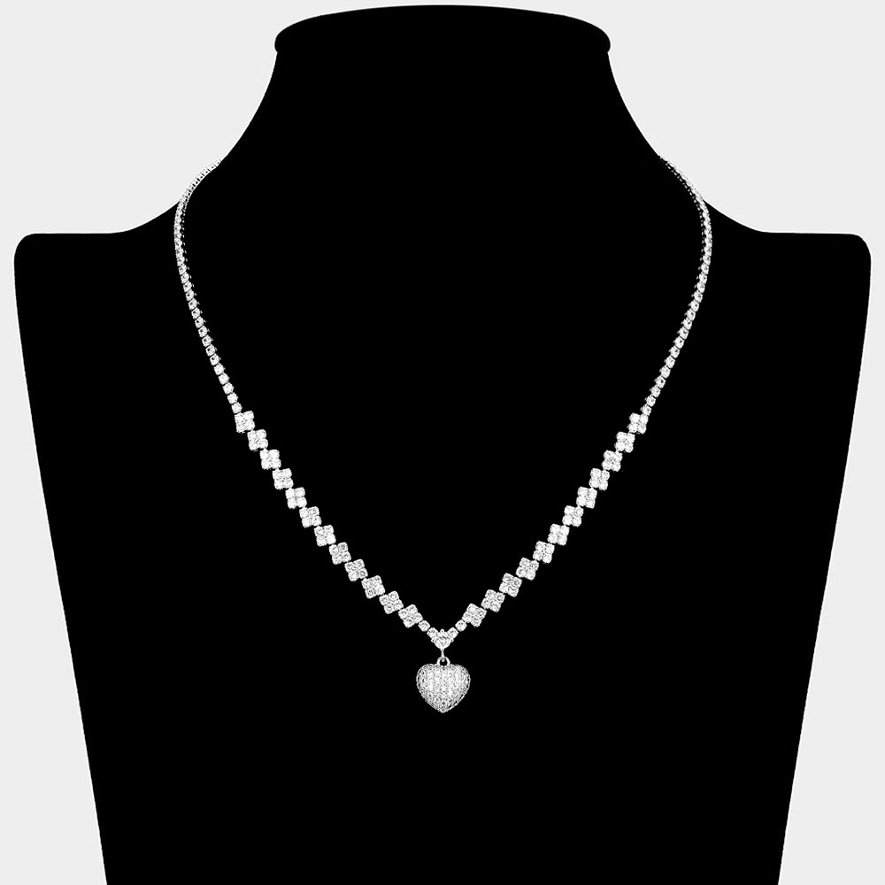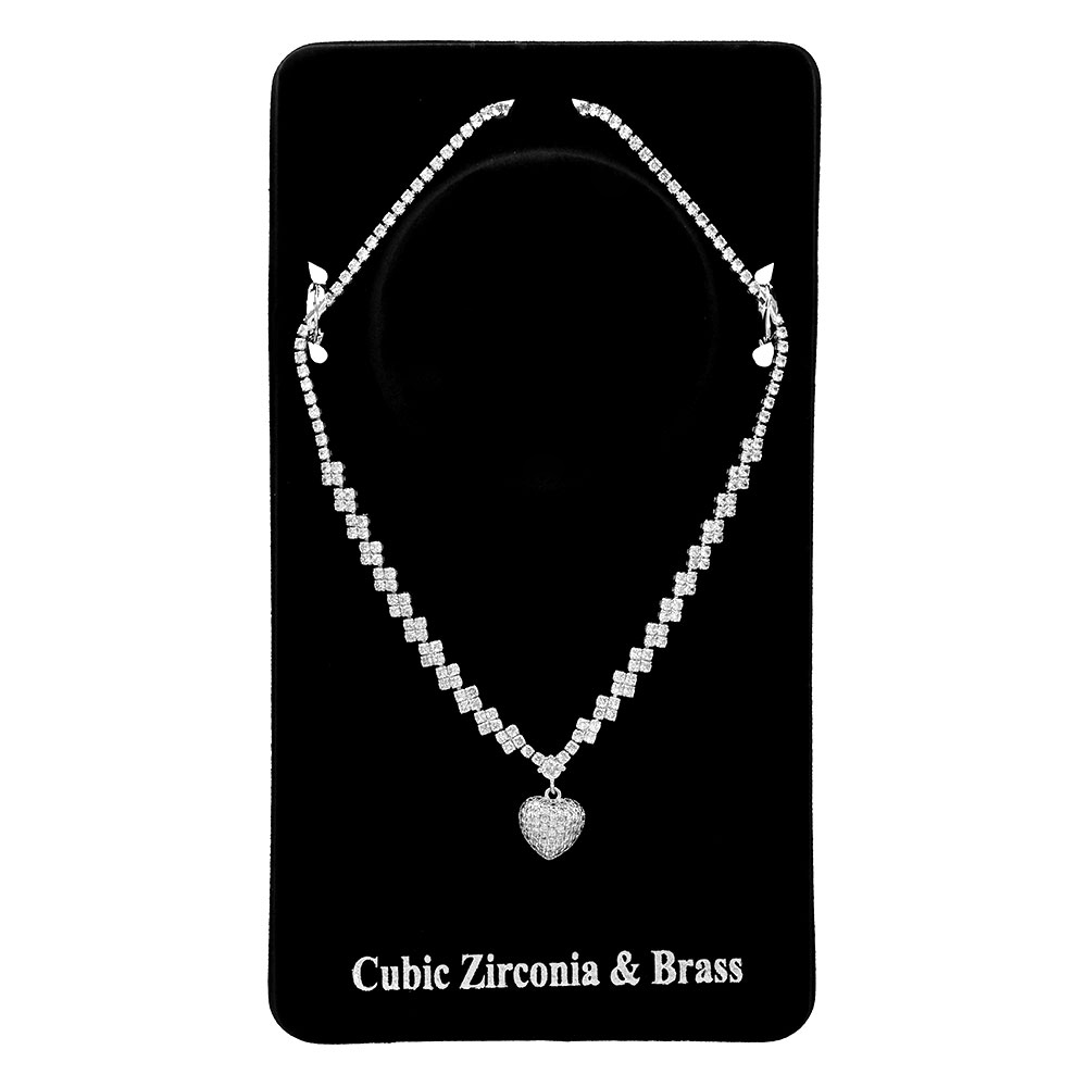 Details • Necklace Size : 16" + 2" L • Decor Size : 0.57" L • Radiant necklace featuring a shimmering heart pendant with clustered stones, paired with an elegant rhinestone chain. A romantic accessory perfect for weddings, date nights, and celebrations, adding timeless charm. • Brass • CZ Cubic Zirconia