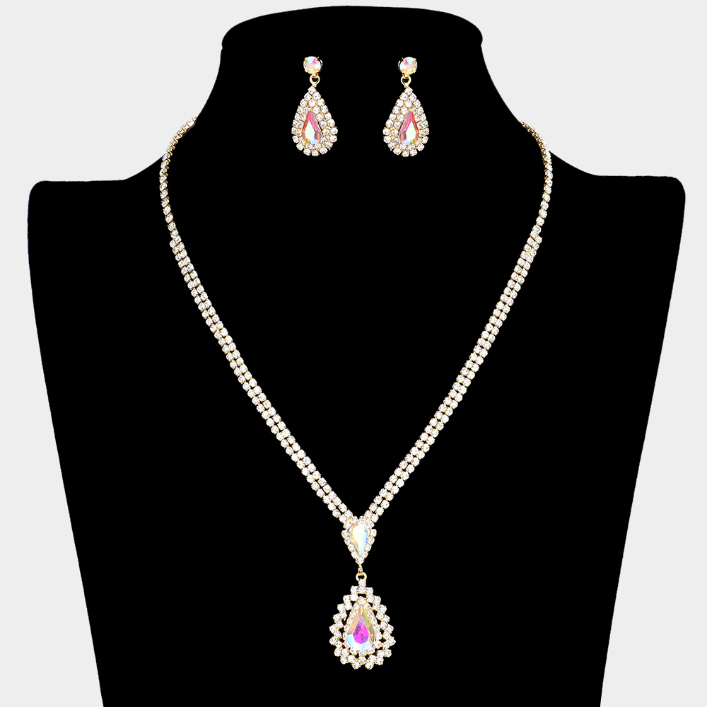 • Elegant teardrop pendant necklace and matching earrings featuring radiant stones and refined detailing. Perfect for weddings, proms, and evening occasions, this jewelry set adds graceful sparkle and timeless charm, completing your look with a touch of sophisticated glamour.