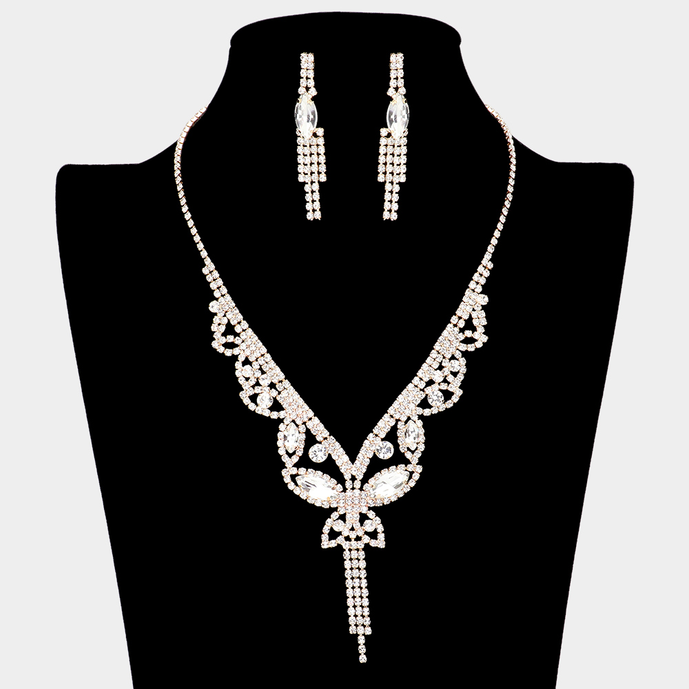 Marquise Round Stone Butterfly Rhinestone Necklace