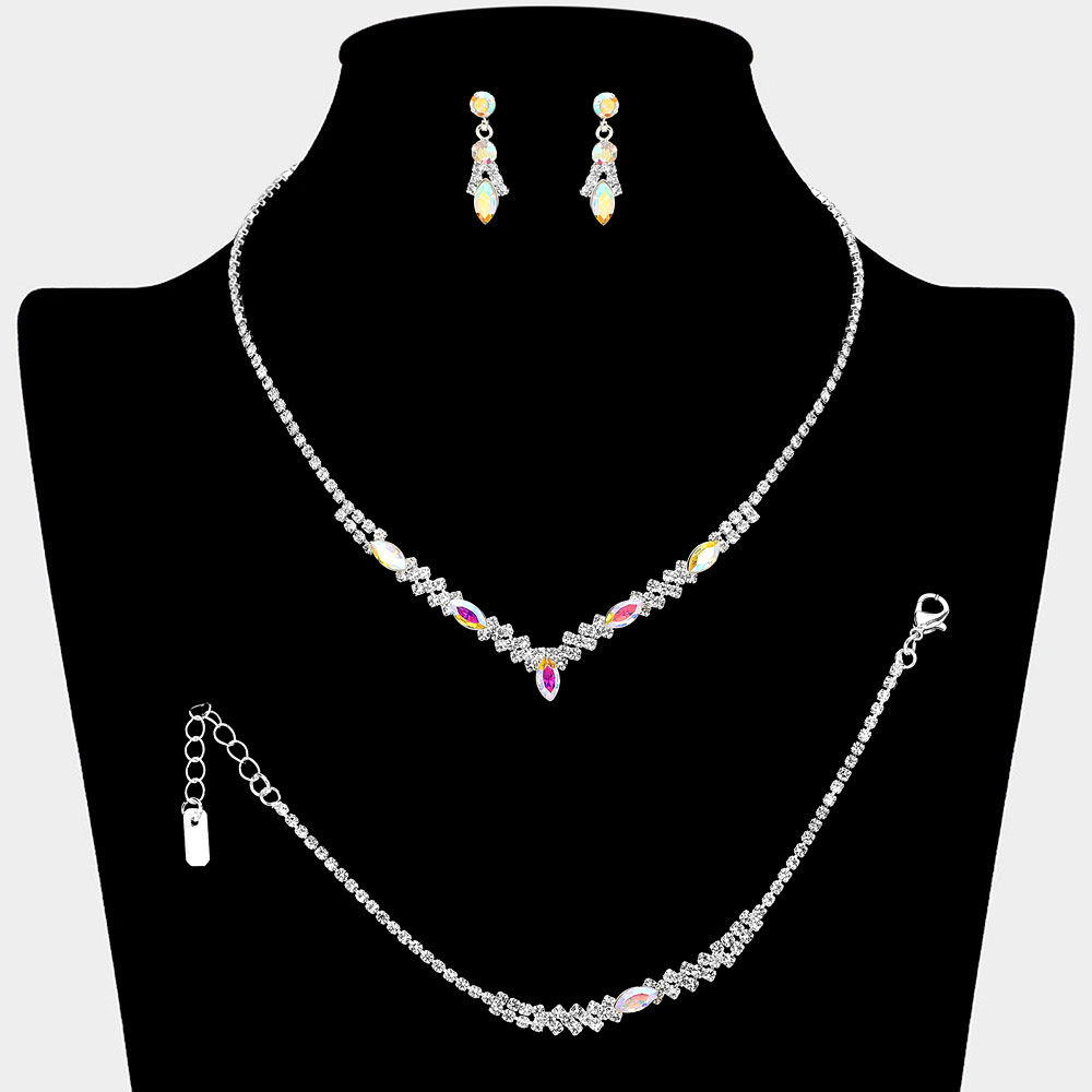 Marquise Stone Cluster Accent Rhinestone Paved Jewelry Set