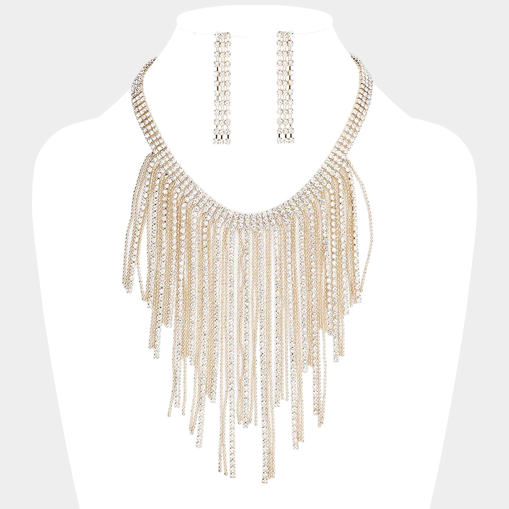 Rhinestone Metal Ball Chain Fringe Choker Necklace