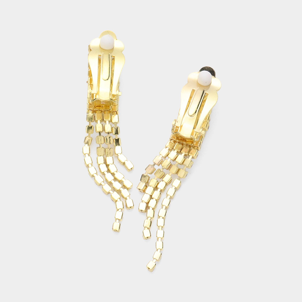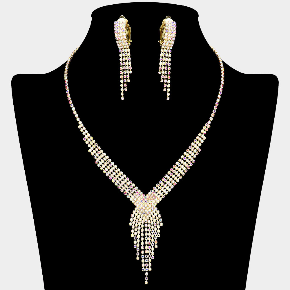 Rhinestone Pave Fringe Necklace & Clip Earring Set