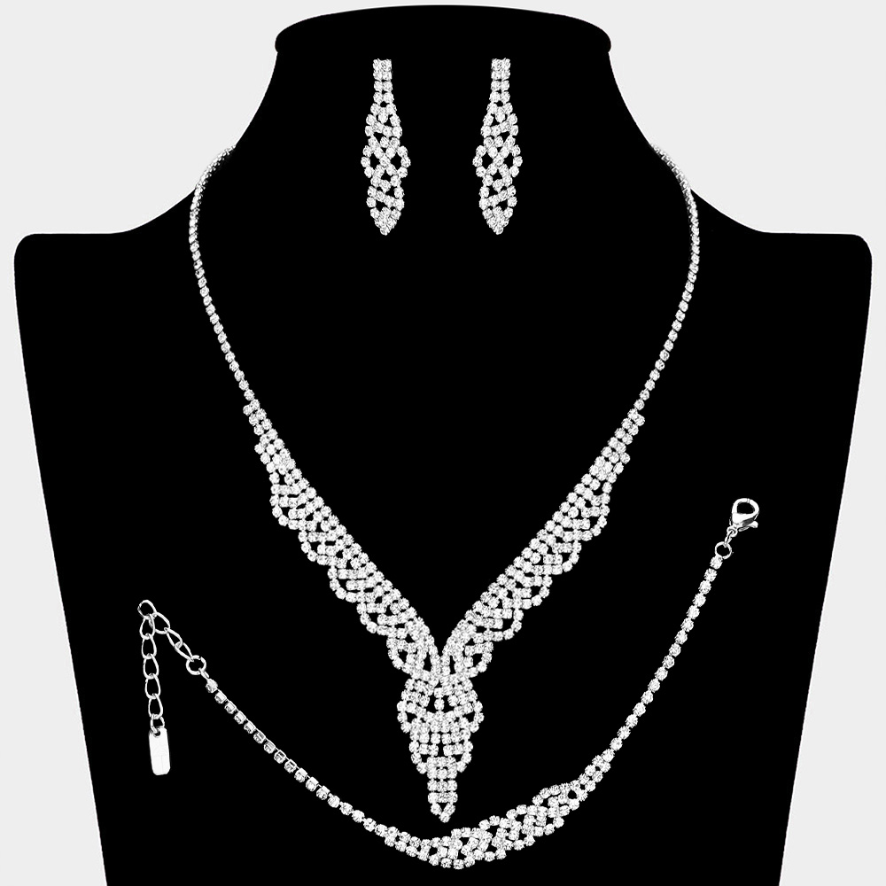Rhinestone Paved V Shaped Necklace Jewelry Set
