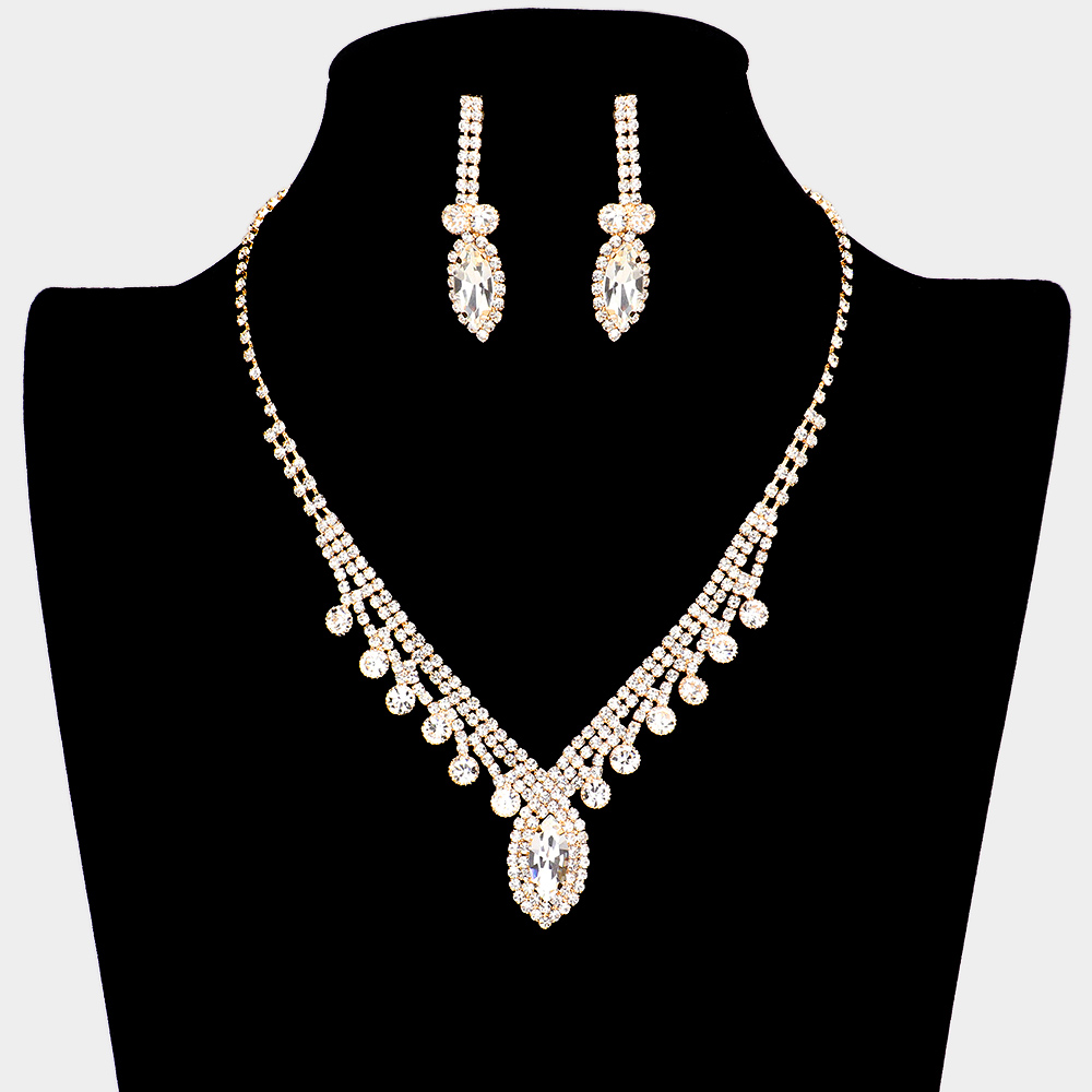 Round Marquise Stone Accented Rhinestone Necklace