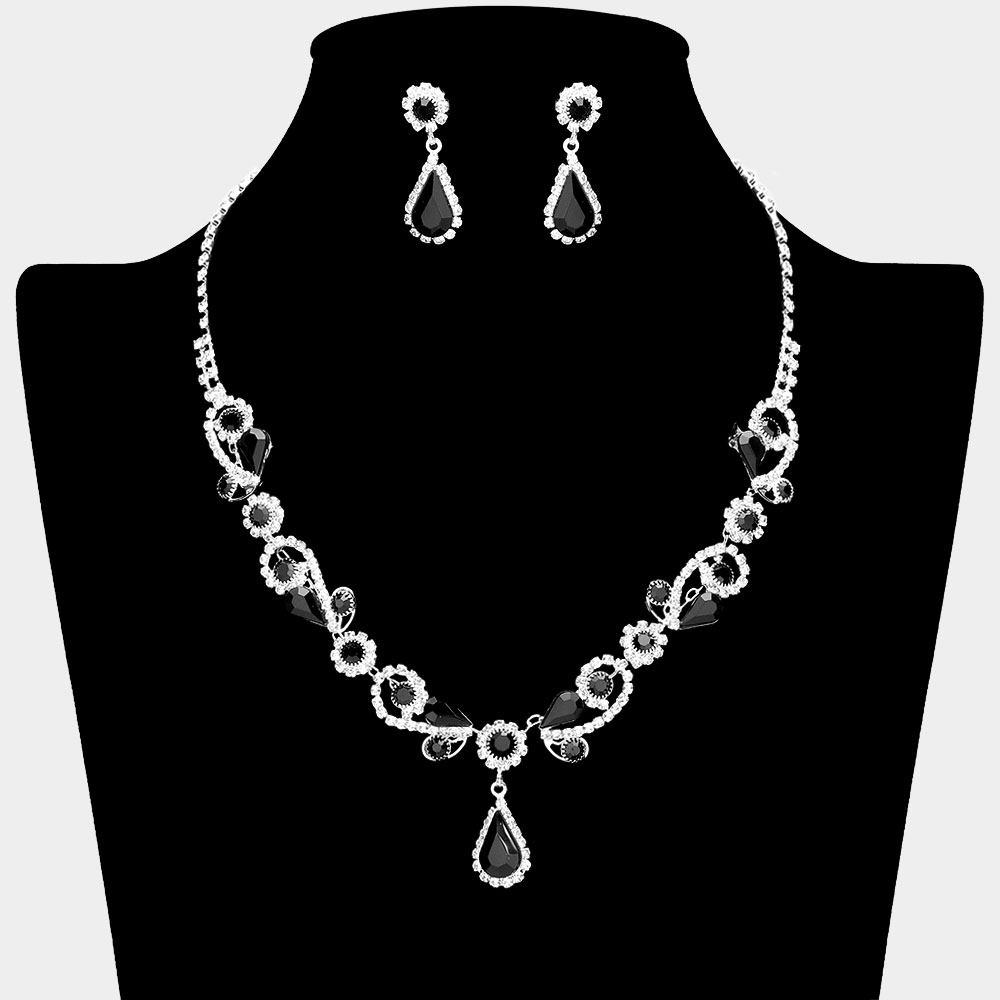 Teardrop Pendant Flower Pointed Rhinestone Paved Necklace
