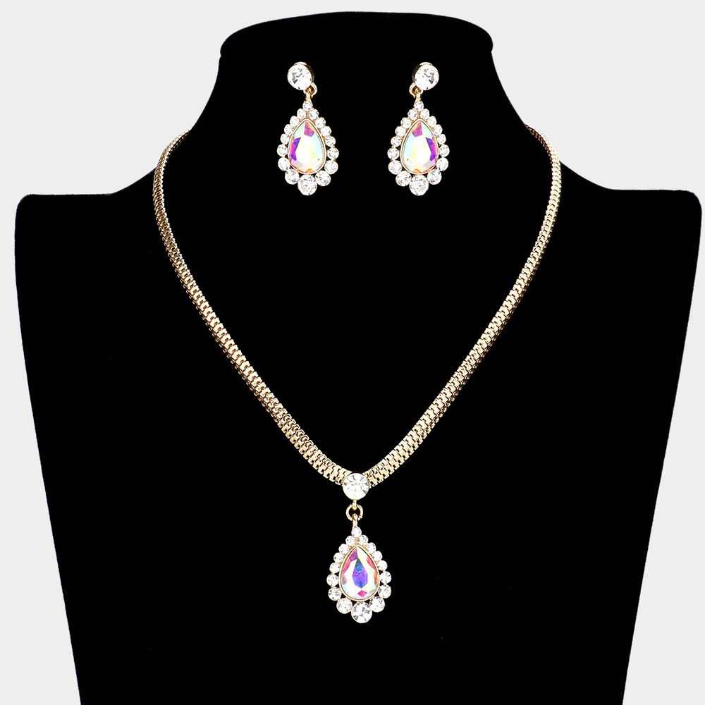 Teardrop Stone Accented Rhinestone Necklace