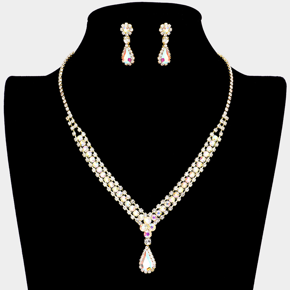 Teardrop Stone Accented Rhinestone Necklace Teardrop Stone Accented Rhinestone Necklace