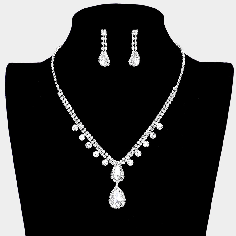 CZ Teardrop Pendant Accent Rhinestone Paved Jewelry Set