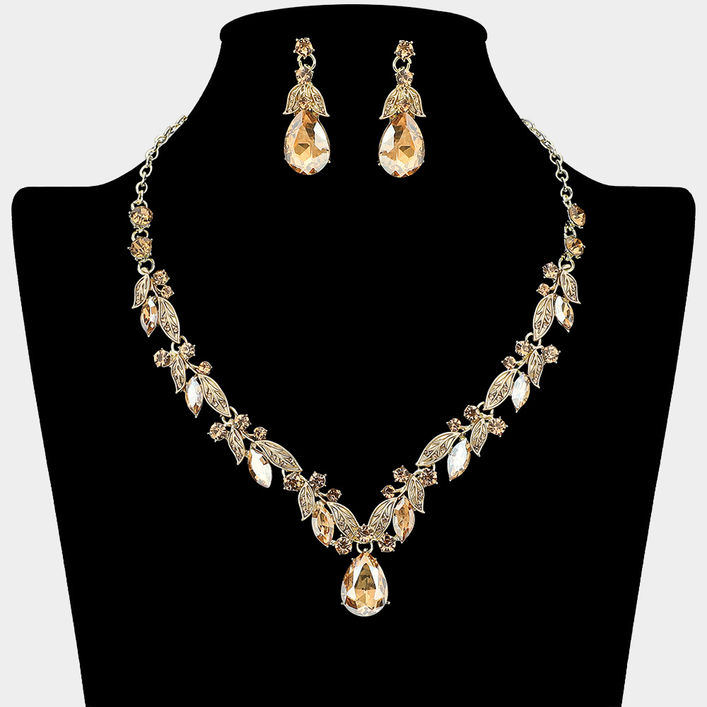Round Teardrop Stone Accented Evening Necklace