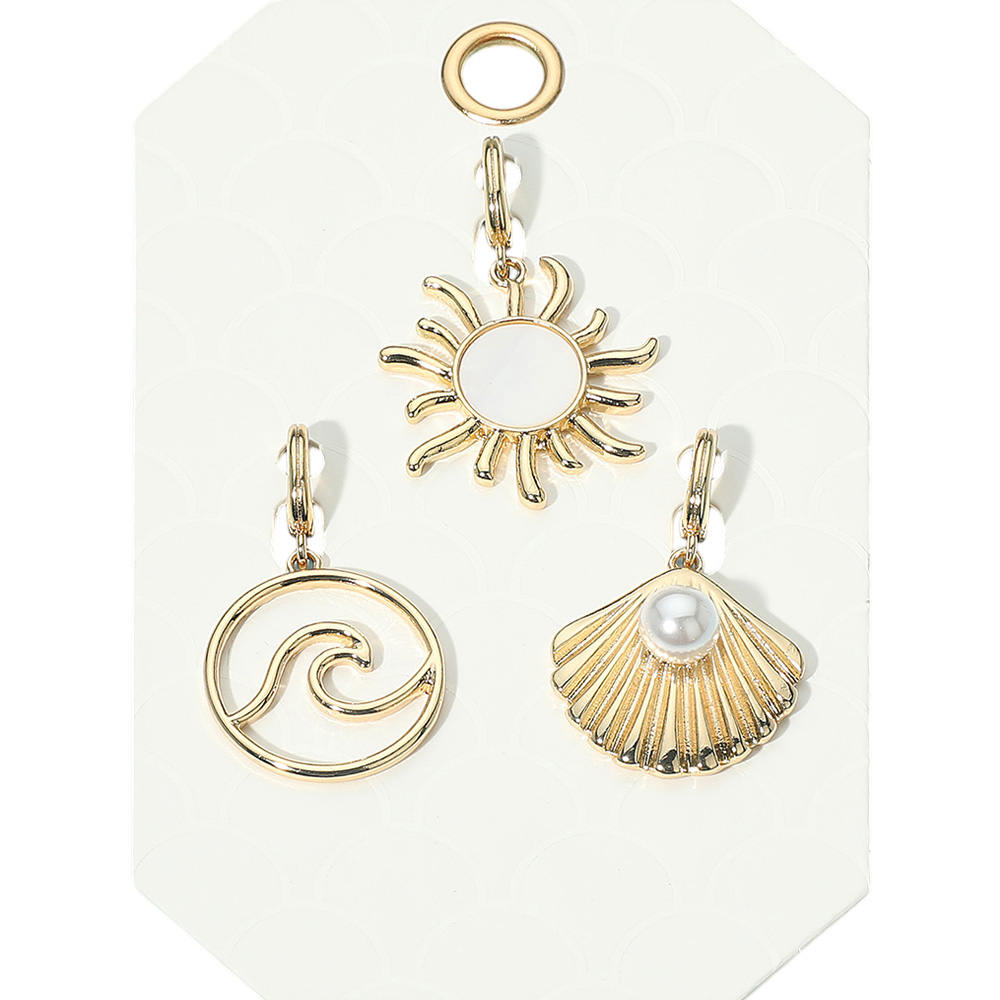 Details • Size : 1.6" L - 1.75" L • Bring coastal vibes to your accessories with this ocean-inspired charm set featuring a radiant sun, wave symbol, and seashell design. Perfect for keychains, necklaces, or bracelets, these lightweight pendants add a unique seaside touch. Great for beach lovers or thoughtful gift ideas. • Lead and Nickel Compliant