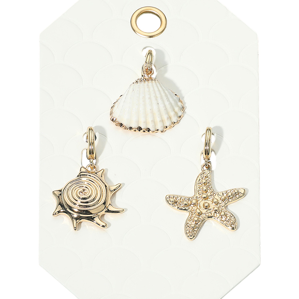 Details • Size : 1.3" L - 1.6" L • Enhance your accessory collection with this beach charm set featuring a detailed seashell, spiral shell, and textured starfish. Perfect for attaching to keychains, bracelets, or necklaces, these ocean-inspired pendants bring a seaside touch. Ideal for beach lovers or thoughtful gifting. • Lead and Nickel Compliant