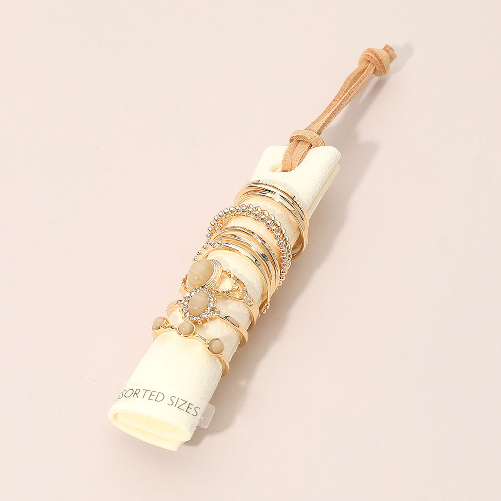 Details • Size : 0.1" - 0.4" H (Assorted Size: 5,6,7,8,9) • Discover this Stacking Ring Set featuring a curated selection of complementary rings designed to be worn together or styled separately. Mix and match to create unique looks for everyday wear or special occasions, delivering versatile elegance and effortless customization to any accessory collection.
