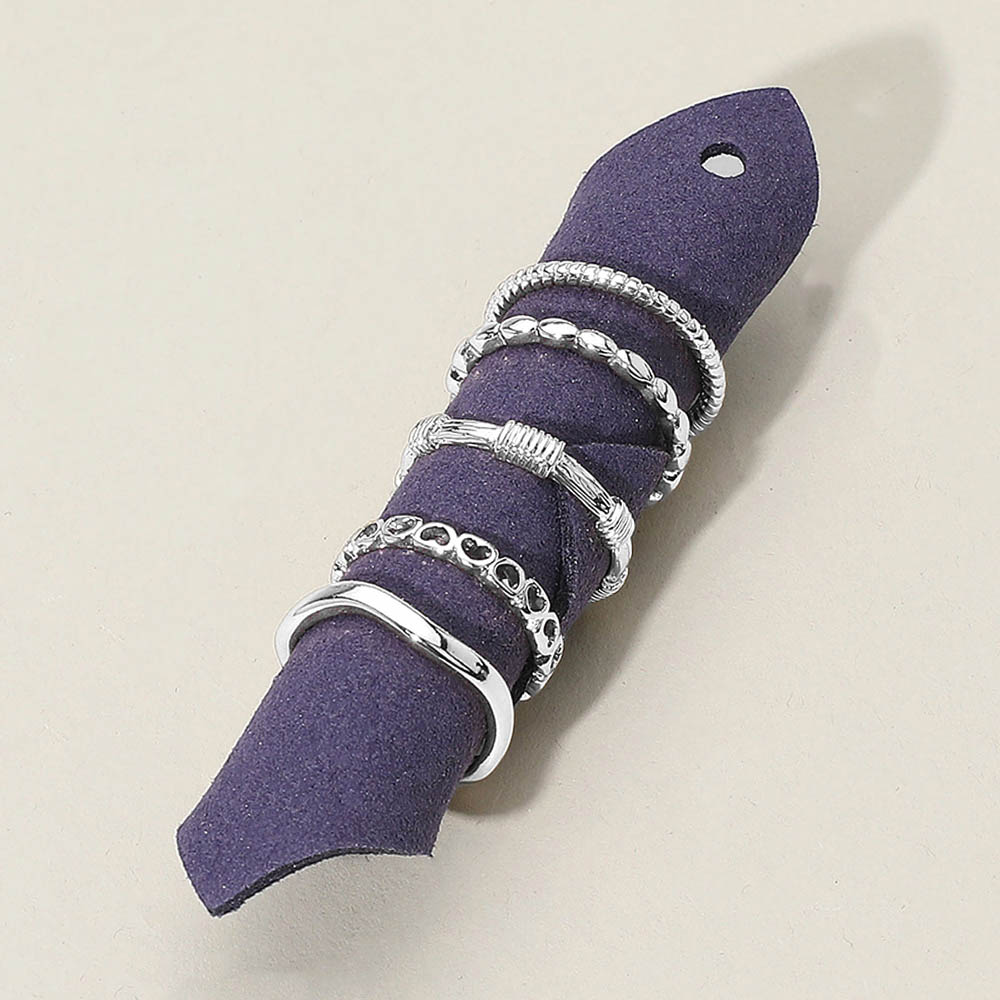 Details • Size : 0.1" H (size 7 Only) • Trendy stackable ring set featuring a mix of minimalist and textured designs. Perfect for creating a layered look or wearing individually, this versatile collection adds a chic touch to everyday outfits and special occasions alike. • Lead and Nickel Compliant