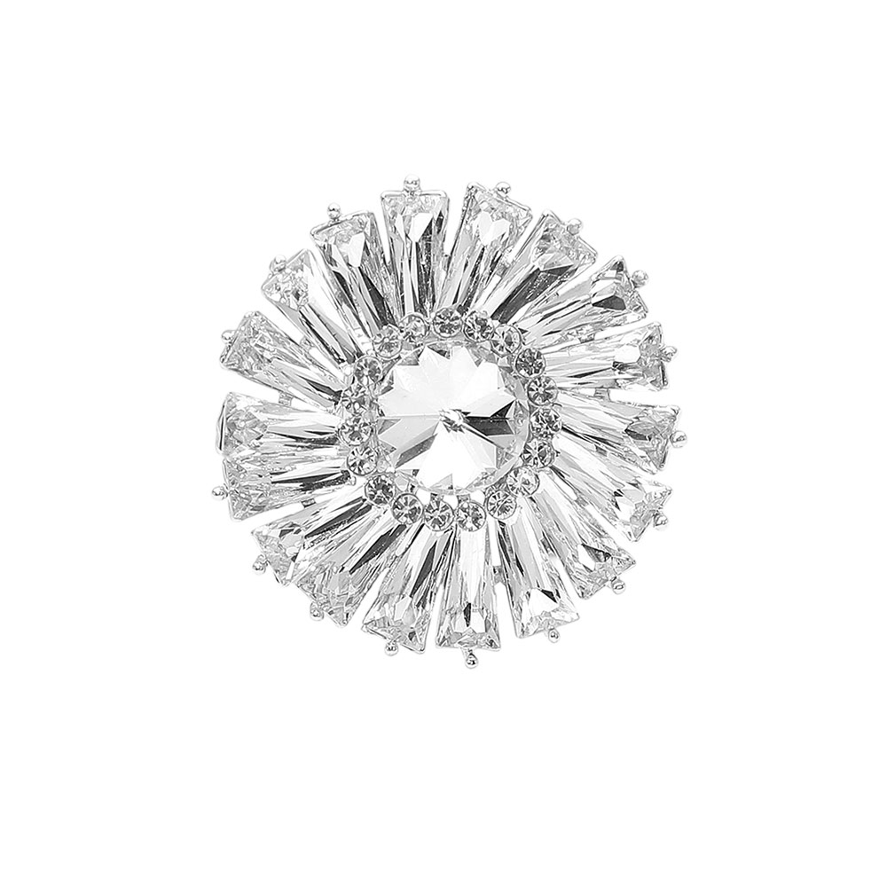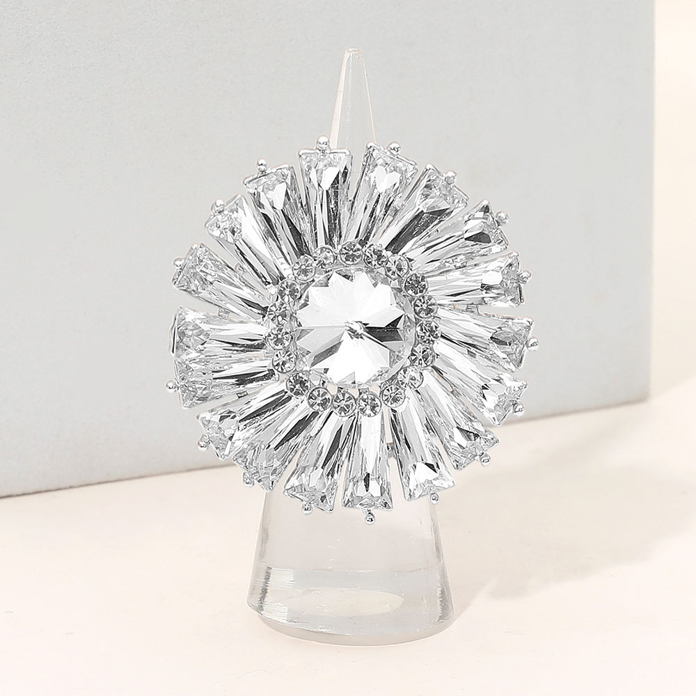 • Bold sunburst statement ring featuring a faceted center and radiant surrounding accents for dramatic sparkle and eye-catching impact. Ideal for parties, special occasions, gifting, or elevating everyday looks with a glamorous focal piece that delivers standout style and confidence.