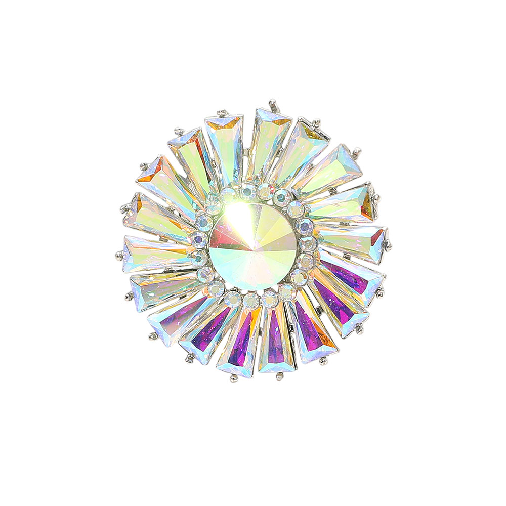 • Bold sunburst statement ring featuring a faceted center and radiant surrounding accents for dramatic sparkle and eye-catching impact. Ideal for parties, special occasions, gifting, or elevating everyday looks with a glamorous focal piece that delivers standout style and confidence.