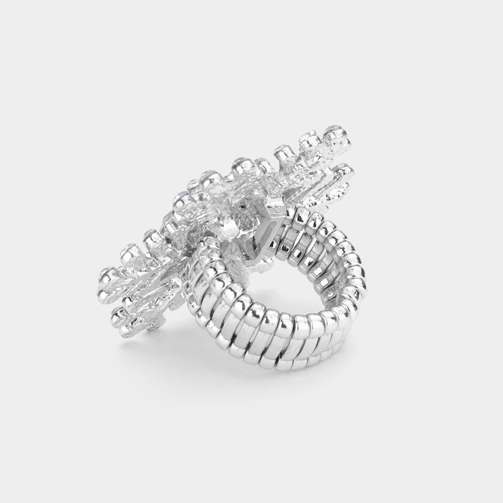 Details • Size : 1.8" X 1.8" • Stretchable • Add a touch of winter sparkle to your look with this crystal snowflake statement ring. Designed with intricate detailing and radiant shine, it’s the perfect accessory for festive occasions, holiday parties, or elevating your everyday style with dazzling elegance. • Lead and Nickel Compliant
