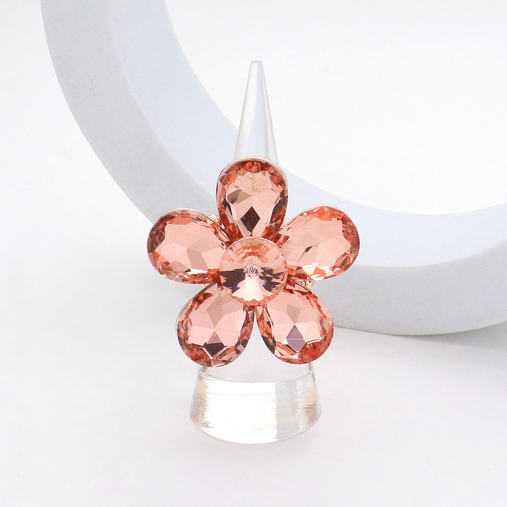 • Elegant flower-shaped statement ring featuring a dazzling faceted petal design that catches the light beautifully. Perfect for adding a bold, eye-catching accent to any outfit, this gem-inspired accessory enhances your style with its unique shape and sparkling radiance.