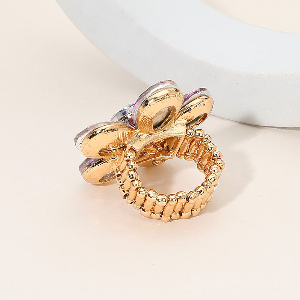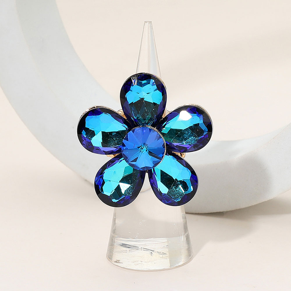 Details • Size : 1.5" H • Stretchable • Elegant flower-shaped statement ring featuring a dazzling faceted petal design that catches the light beautifully. Perfect for adding a bold, eye-catching accent to any outfit, this gem-inspired accessory enhances your style with its unique shape and sparkling radiance. • Lead and Nickel Compliant