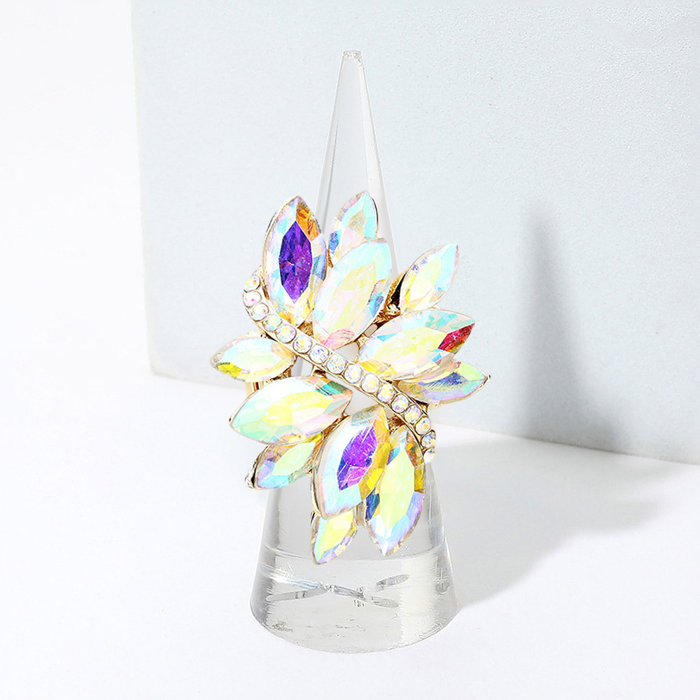 Details • Size : 1" X 1.5" • Stretchable • Shine bright with a statement cocktail ring designed in a striking crystal leaf motif. Featuring multi-faceted stones and dazzling sparkle, this glamorous accessory is perfect for parties, special occasions, or elevating everyday outfits with bold elegance.