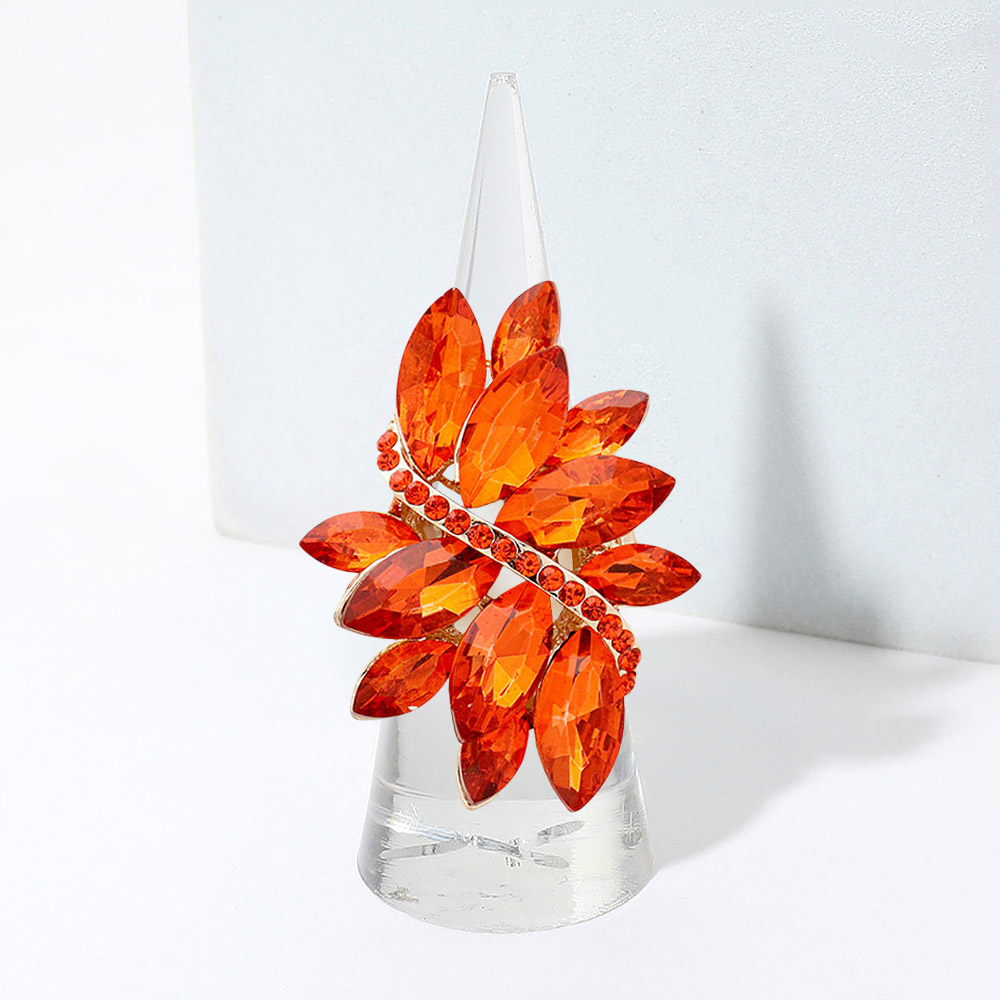 • Shine bright with a statement cocktail ring designed in a striking crystal leaf motif. Featuring multi-faceted stones and dazzling sparkle, this glamorous accessory is perfect for parties, special occasions, or elevating everyday outfits with bold elegance.