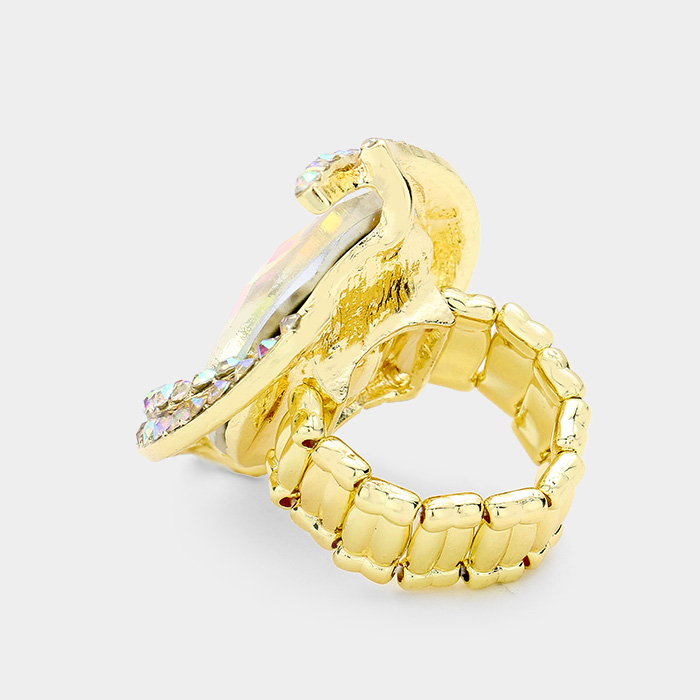 • Eye-catching statement ring featuring an oval faceted gem embraced by a twisted band of sparkling rhinestones. Designed to add bold elegance to any look, this glamorous accessory highlights sophistication and flair, perfect for special occasions or elevating everyday style.