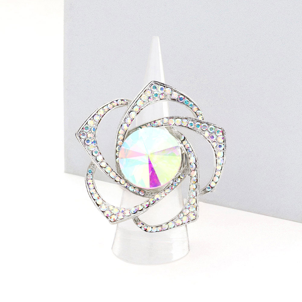 Round Stone Centered Rhinestone Flower Stretch Ring