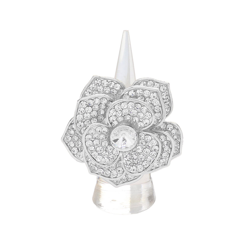 Round Stone Centered Rhinestone Paved Flower Stretch Ring