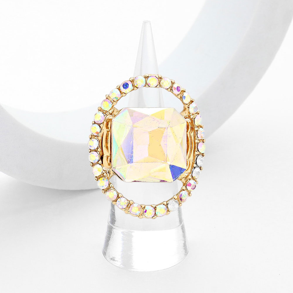 Square Stone Center Rhinestone Paved Rim Stretch Ring