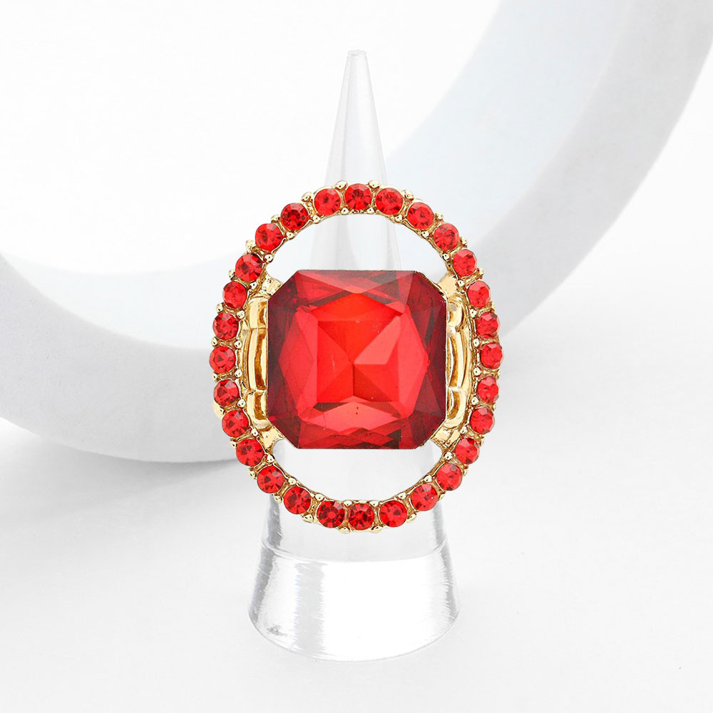 Square Stone Center Rhinestone Paved Rim Stretch Ring
