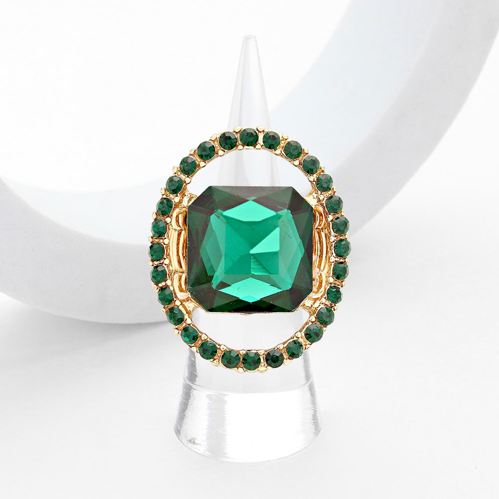 Square Stone Center Rhinestone Paved Rim Stretch Ring