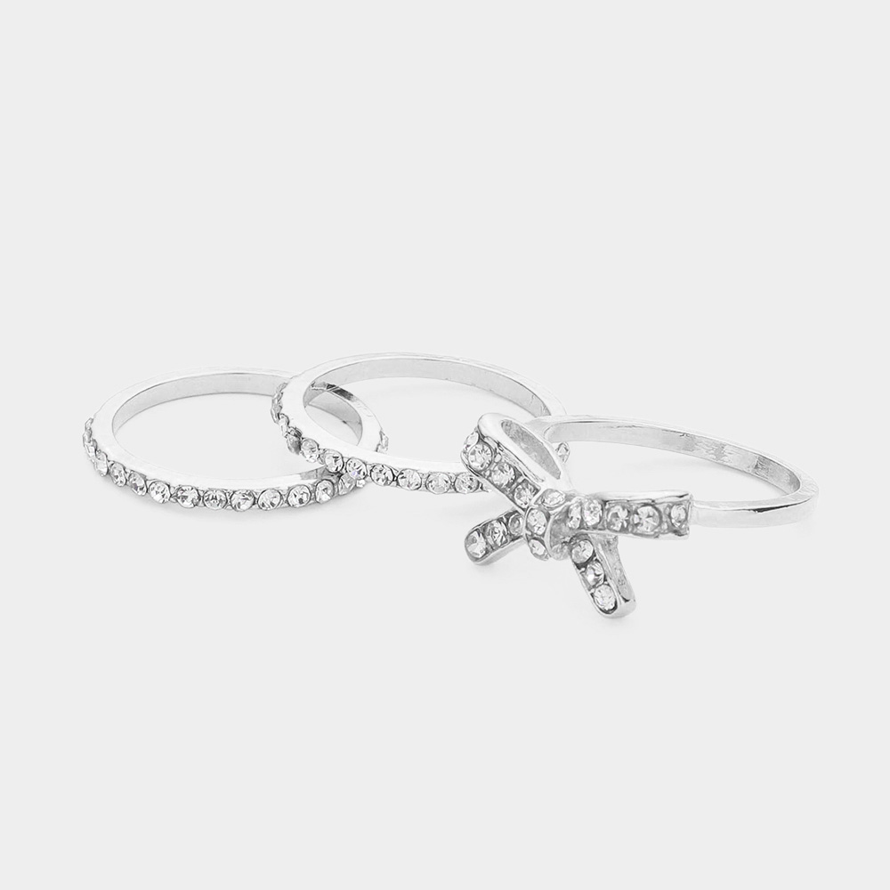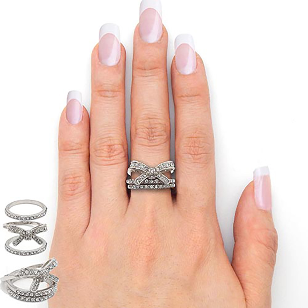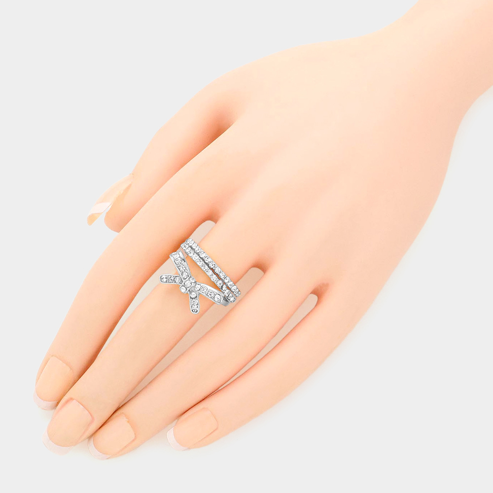 SECRET BOX_14K Gold Dipped Rhinestone Paved V Bow Accent Adjustable Ring