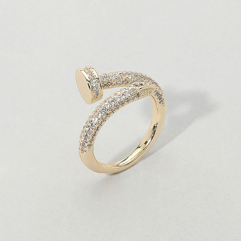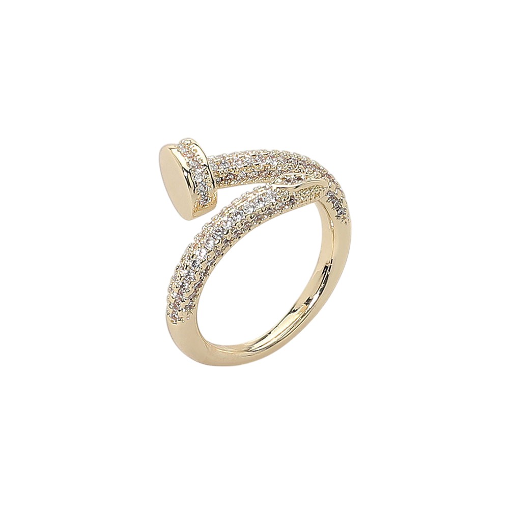 • Add a bold twist to your look with this nail-inspired wrap ring featuring dazzling cubic zirconia accents. Perfectly adjustable for sizes 6–9, this modern statement piece exudes edgy elegance.