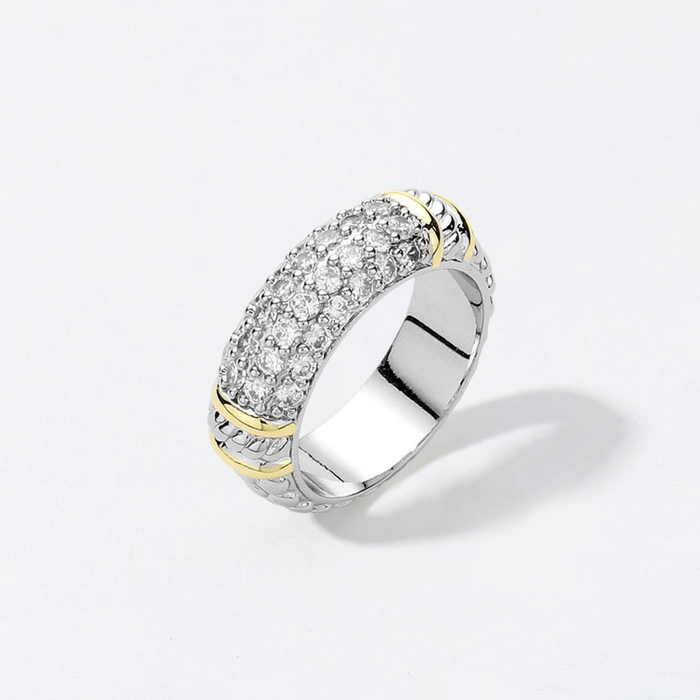 CZ Stone Paved Two Tone Ring