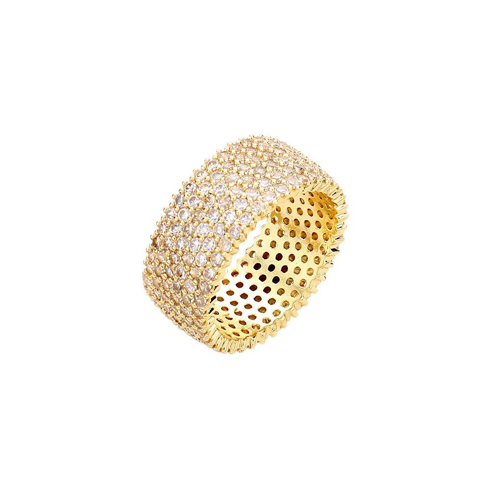 Details • Size : 0.3" H • Elegant wide band ring featuring a full pave surface that delivers maximum sparkle and a bold statement look. Designed with a smooth interior for comfortable wear, this shimmering piece adds refined brilliance to any style and makes a standout accessory for everyday or special occasions.